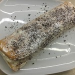 Противень из духовки застелить бумагой для выпечки, равномерно распределить тесто по всей поверхности. Можно стукнуть один раз о стол, чтобы вышли крупные пузырьки воздуха и не было пустот в тесте. Выпекать бисквит в разогретой до 180 С духовке до пробы на сухую лучинку. ВАЖНО бисквит не перепечь, тогда он будет ломаться и крошиться. Бисквит готов, когда прикасаясь пальцем к тесту он остается сухим, но на поверхности теста остается маленькая вмятина. Готовый бисквит с листом бумаги перевернуть на второй лист бумаги для выпечки, аккуратно снять бумагу с бисквита и опять накрыть ей, свернуть пласт бисквита, окруженный с двух сторон бумагой, рулетом или роллом, сверху еще обернуть полотенцем. Полностью охладить. Верхняя часть бисквита прилипнет к бумаге - это нормально, снимать аккуратно!