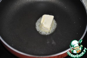 Берём сковороду, растапливаем кусочек сливочного масла. -