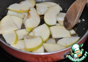 Яблоко чистим от семян, шкурку убираем по желанию. Режем яблоко тонкими сегментами, кладём в карамель.