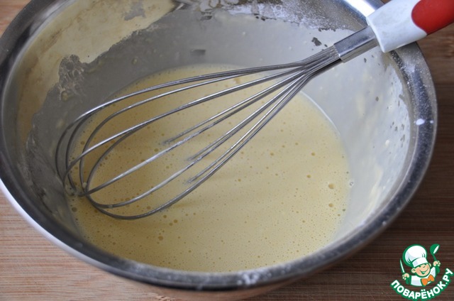 Должно получиться жидкое тесто, чуть гуще, чем на блины. -