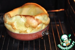 Выпекаем 20-30 минут в зависимости от вашей духовки до румяности. Я не удержалась сделала фото прямо в духовке. Как необычно поднялись края блинчика.