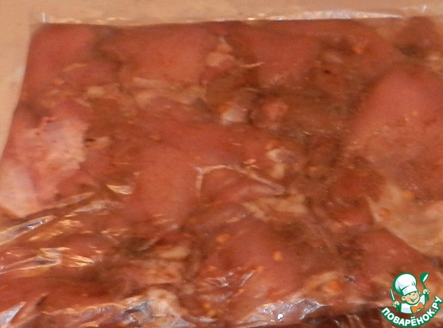 Созревшее мясо выкладываем в пакет, распределяем его по пакету, что бы получилась толщина примерно 1-1,5 см. и отправляем в морозилку. В это же время ставим в морозилку и воду.