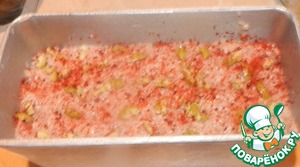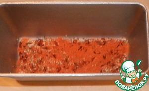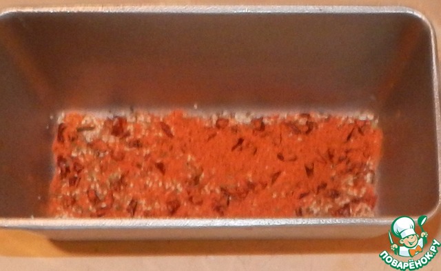 Подготавливаем форму: на дно формы высыпаем паприку молотую и кусочками, кунжут, базилик - любые декоративные специи какие у вас есть.
