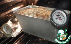 Ставим форму в духовку и готовим при t60 градусов - 30 мин., далее при t80 до готовности. Мясной хлеб готов, когда t внутри изделия достигнет значения от 69-72.