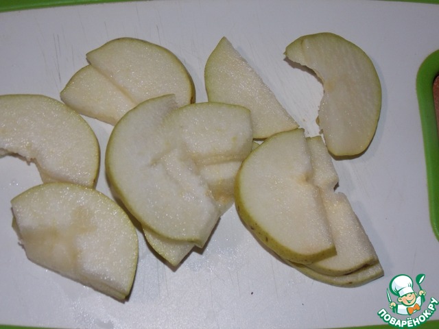 Вылить тесто в форму, сверху разложить грушу. Выпечь в разогретой духовке при 180С, 35-45 минут.