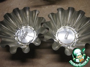 Взять формочки ( у меня маленькие для кексов), смазать их маслом