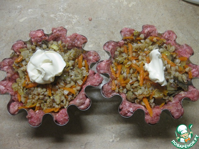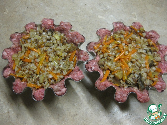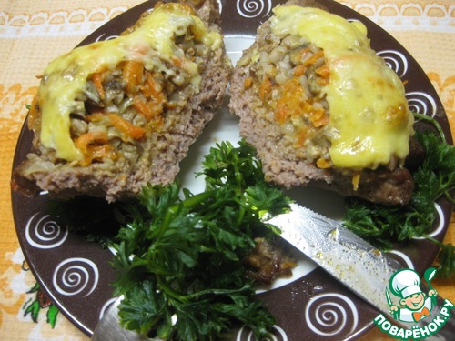 Корзинка из мясного фарша, с сочной начинкой из гречи с лесными грибами, с сырной шапочкой. Это вполне самостоятельное блюдо, - и мясо, и гарнир! Отлично подойдет для сытного ужина!