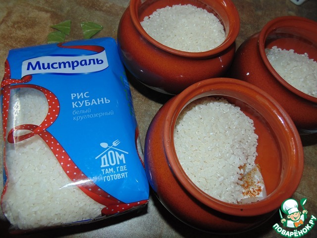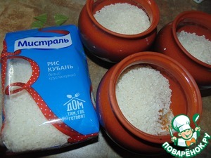 Ингредиенты для «Рис с рыбой в горшочках»: