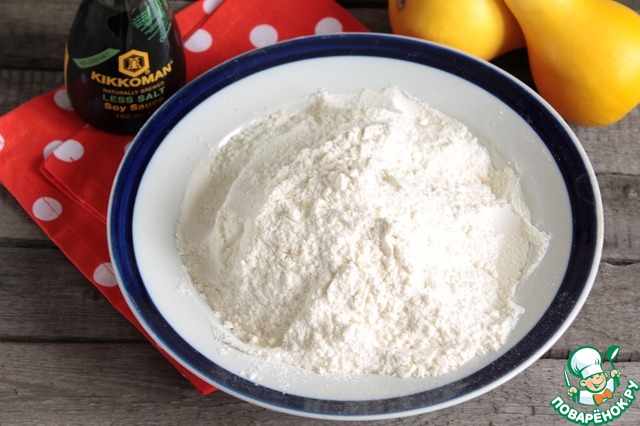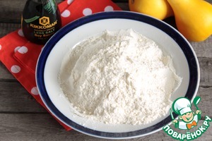 • Для теста смешать в одной емкости просеянную муку пшеничную, сахарный песок, соду и ванилин.