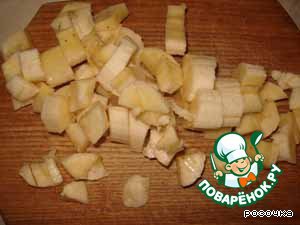 Банан очистить, порезать кусочками.