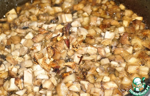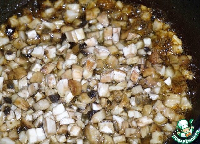 На разогретую сковороду наливаем немного растительного масла и отправляем на нее шампиньоны.