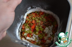 • Выложить перец в ведерко, добавить кориандр и включить ХП на режим "Тесто".