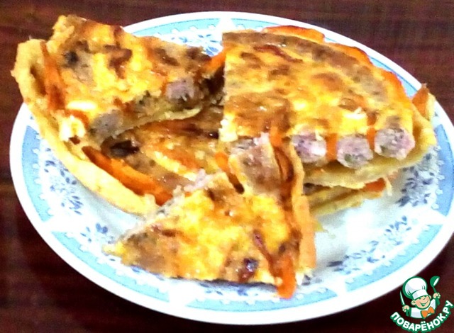 Нет идей на ужин, а по дороге домой купили купаты? Давайте приготовим их немного поинтереснее, в виде пирога что ли. Вкусно и в тёплом и в остывшем виде в качестве ссобойки. Соевый соус добавит пикантности.