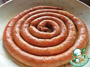 • В этой же сковороде обжарить с двух сторон купаты недолго.