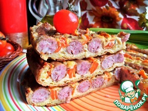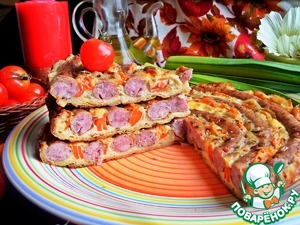 Интересный рецепт, понравился. Но есть свои нюансы- у меня ушло 800 гр.колбасы, 5 яиц на форму 22 см.