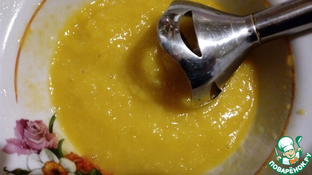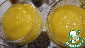 Манго очистить, мякоть нарезать дольками или выскрести ложкой, если фрукт очень спелый. Взбить блендером в пюре.