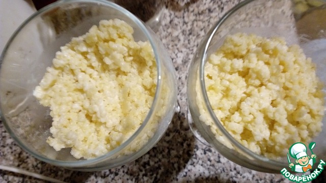 В стаканы, бокалы или креманки выложить пшенную кашу.