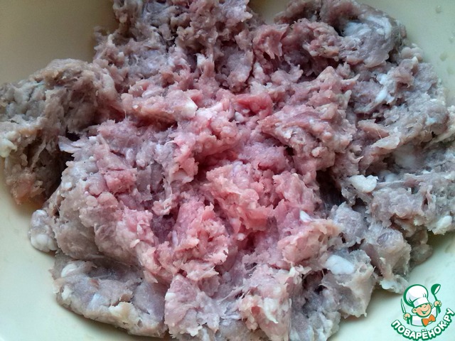 • Для фарша возьмите говядину и нутряное сало (или свинину). Мелко нарубите или перекрутите на мясорубке через крупную решетку.