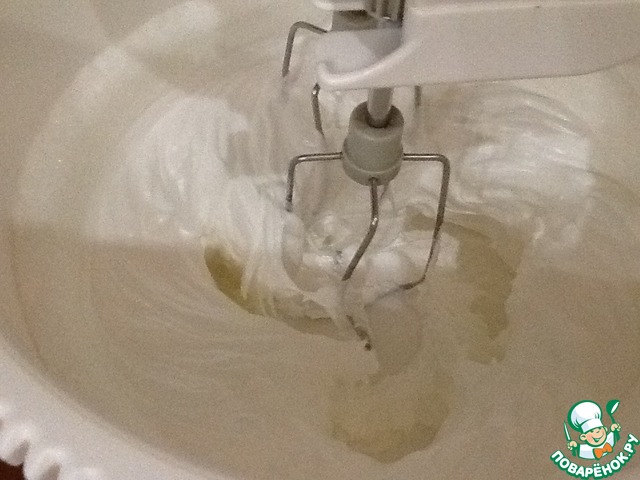 Опять отделим белки от желтков и взобьем белки с половиной сахара. И уберем в другую емкость и в холодильник.