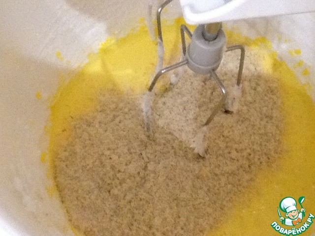 Добавим миндальную муку. Взобьем на низкой скорости.