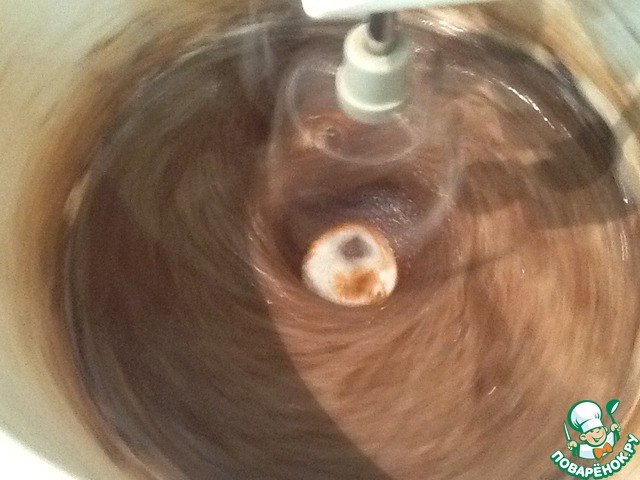 Потихоньку вольем растопленное масло. Опять перемешаем.