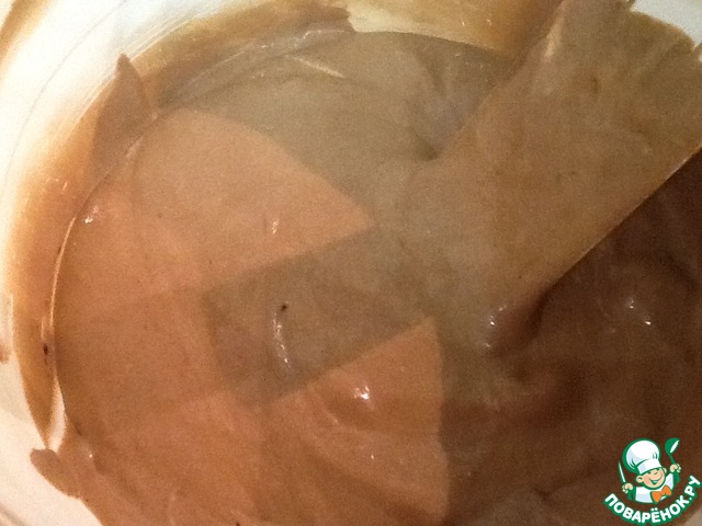 Снимаем с огня, всыпаем шоколад и размешиваем до однородности. Ставим охлаждаться на водяную баню и помешиваем. Масса, остывая, загустевает. -