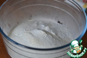 В миске смешать муку с разрыхлителем теста, сахаром и ванильным сахаром.