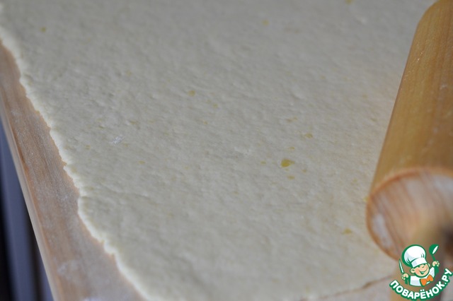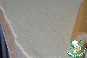 Острым ножом разрезать подготовленное тесто на пополам по длине.