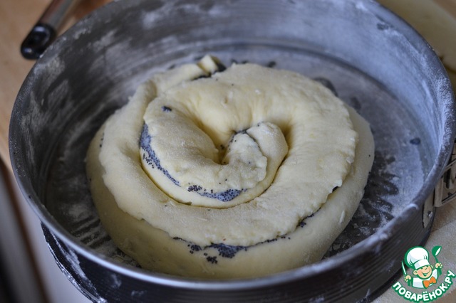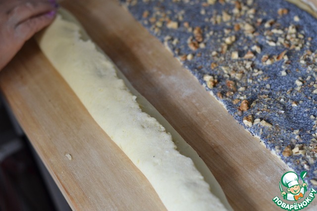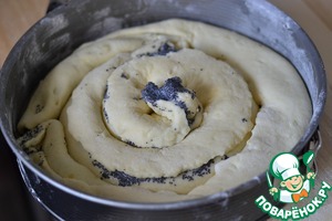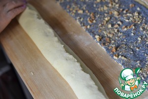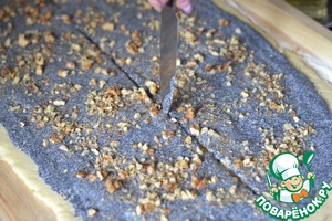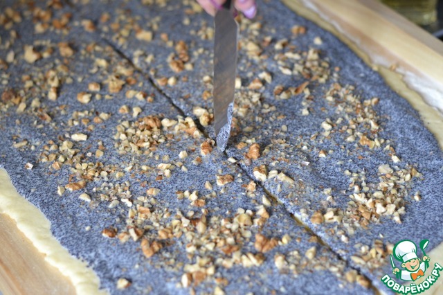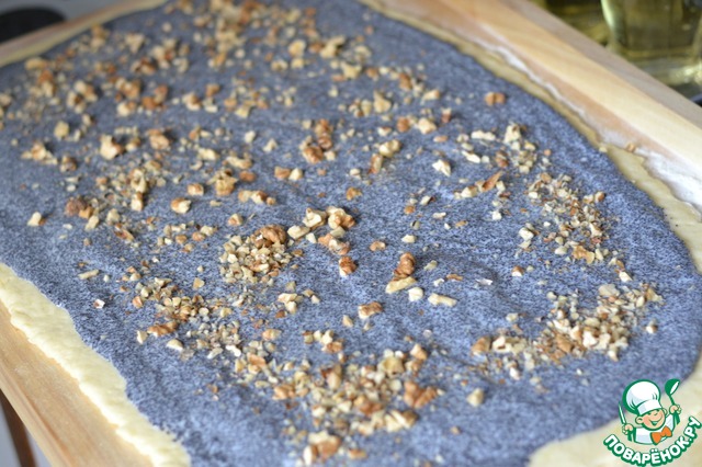 Нанести на тесто маковую смесь, хорошо растереть по всей поверхности.