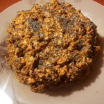 Массу выложить на тарелку в виде горки. Посыпать сверху маком и отправить тортик в холодильник хотя бы на пару часов.