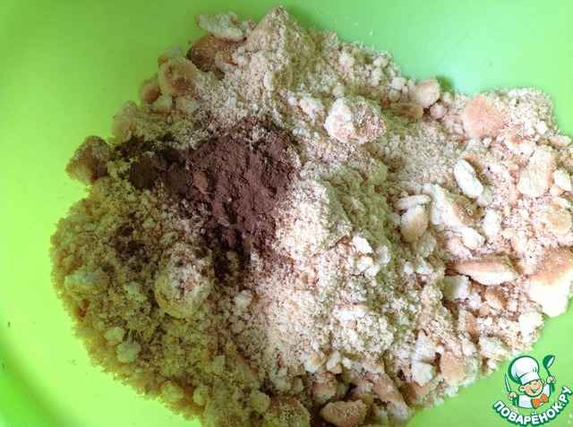 Печенье поломать руками, добавить корицу и перемешать.