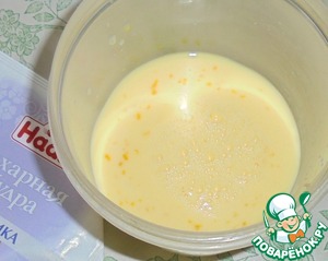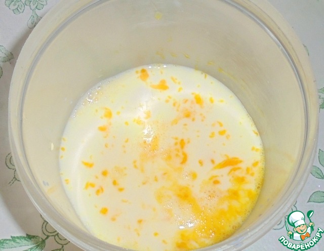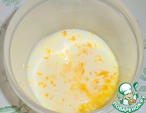 Приготовим тесто для блинов. Смешиваем молоко и яйцо.