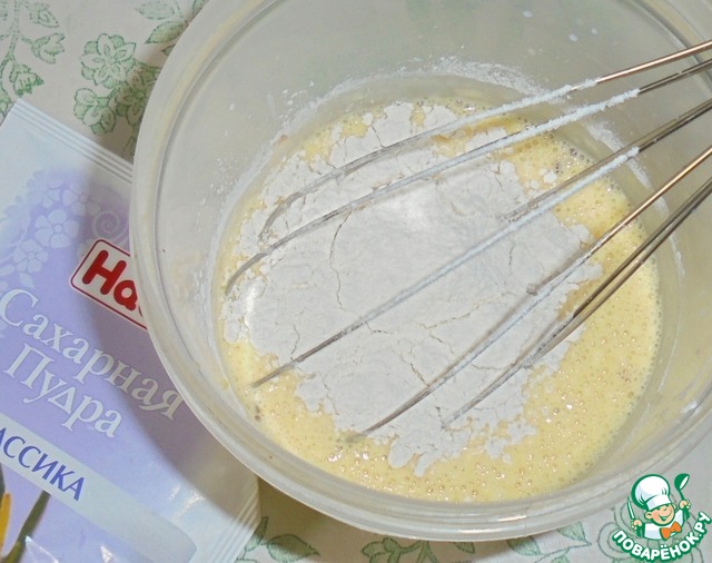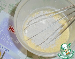 Добавляем сахарную пудру и соль. Перемешиваем.