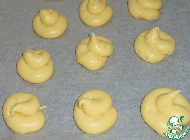 Выдавить тесто на противень через кондитерский мешок.