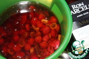 Вишню и изюм промыть, залить кипятком на 30 минут.