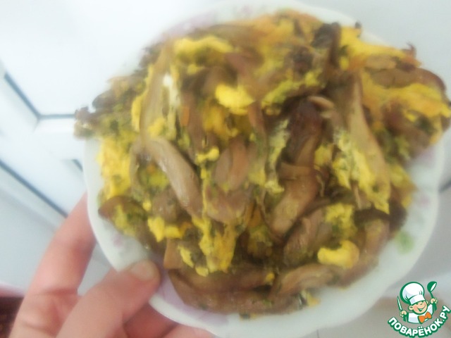 Как-то пришла голодная и по-быстрому решила вкусно поесть. Увидела баночку грибов и соорудила такой омлет. Думаю многие знают такое блюдо, но может кому-то пригодится.