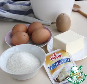 Масло сливочное размягченное, сахар, соль, ванилин растереть деревянной ложкой, постепенно ввести по одному яйца, тщательно размешать.