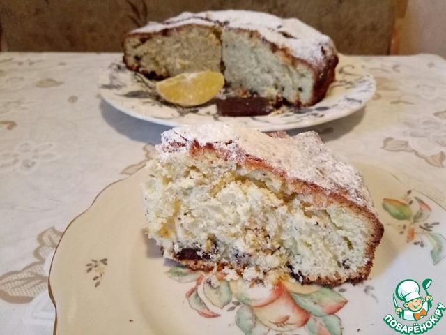 Вместо цедры добавила кусочки апельсина) а поскольку муж любит шоколад, полила растопленным шоколадом)