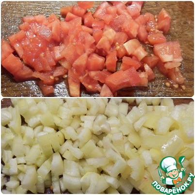 С помидор удалить кожицу любым удобным для вас способом. Я разрезала их на 4 части и тонким острым ножом срезала по типу, как срезают филе с рыбы.