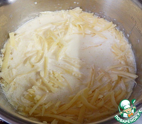 В достаточно горячие сливки добавляем сыр и помешивайте, пока он не расплавится.
