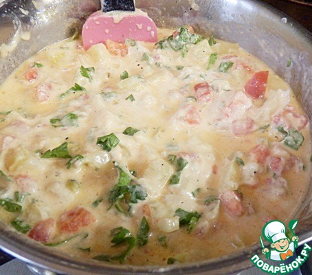 Из изменений - вместо петрушки свежий зеленый базилик; сливки 30%; помидоры не свежие, а в собственном соку (они мне нравятся своим насыщенным вкусом, тем, что почищены и ценой).