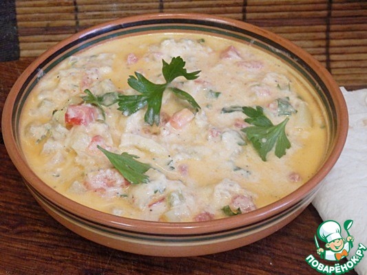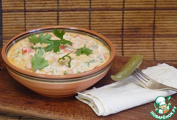 Сырно-томатный соус обязательно понравится и взрослым и детям. А для поклонников сыра, он вообще станет одним из любимых блюд. Этот соус имеет в основе жидкую — сливочную массу, а кусочки лука, томатов и сладкого перца придают ему пикантность. Подходит к мясным блюдам, как заправка для пасты. А так же вкусен, как самостоятельное блюдо, с лавашем, питой, любыми лепешками.