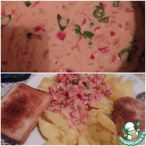 К вареной картошке соус подошел отлично, но к макаронам не подошел бы совсем. Вкусно макать в него поджаренный тост.