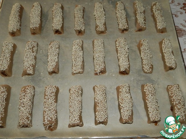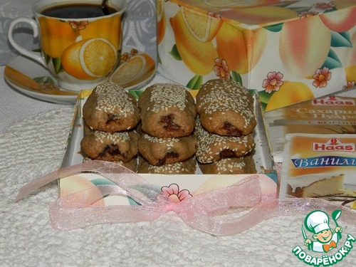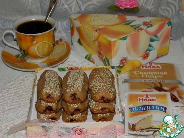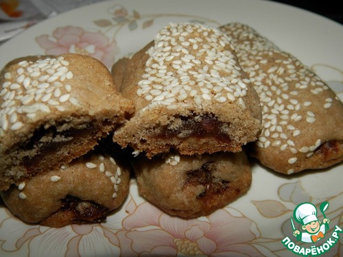 Ливанское печенье с финиковой начинкой и кунжутной посыпкой, не только разнообразит ваш стол, но и подарит незабываемое чаепитие с восточной ноткой! Это лакомство не просто найти в магазинах, поэтому, в качестве подарка, коробочка с таким вкусным, необычным печеньем обязательно удивит и порадует ваших гостей! Тесто для печенья готовится без яиц, очень легко и просто!