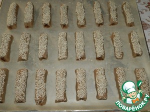 Обмакнуть верх печенья в кунжут или измельчённые орешки. Выложить на противень, застеленный бумагой для выпечки, на расстоянии друг от друга. Печенье увеличится в объёме. -
