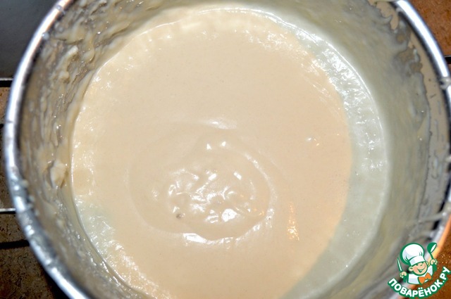 Соединить с сухими ингредиентами и замесить тесто. Тесто должно быть гладким и походить по консистенции на сметану.