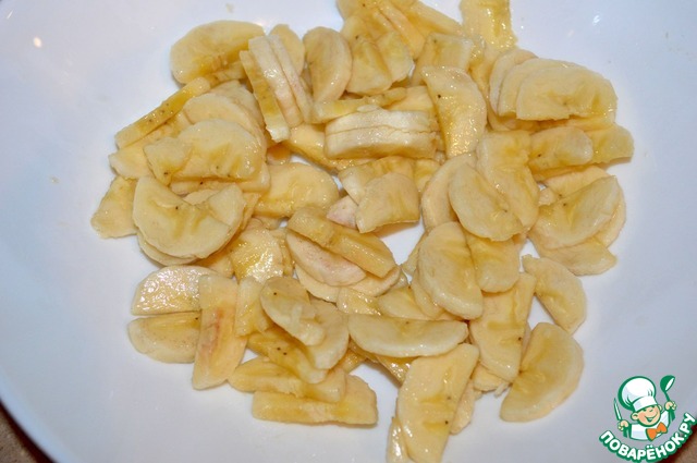 Бананы очистить и порезать на ломтики или кружочки.