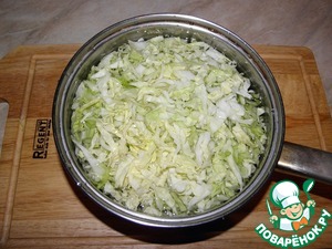 Капусту нашинковать, чем мельче, тем лучше, можно воспользоваться специальной теркой