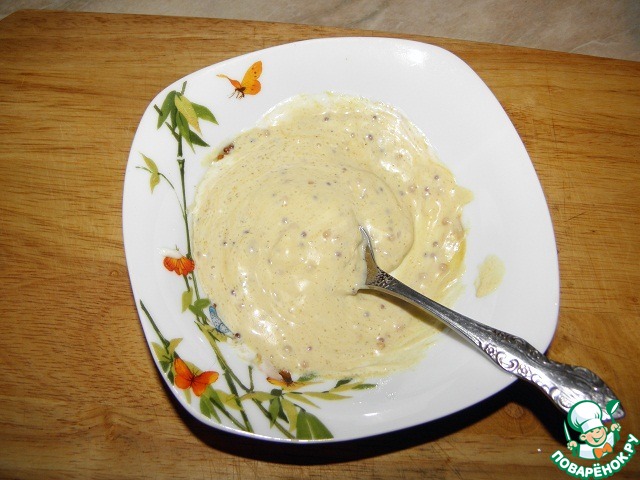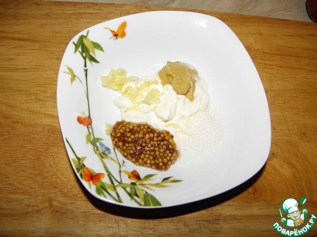 - Горчица (1 ч.л. зернистой + 1 ч.л. обычной) — 2 ч. л.