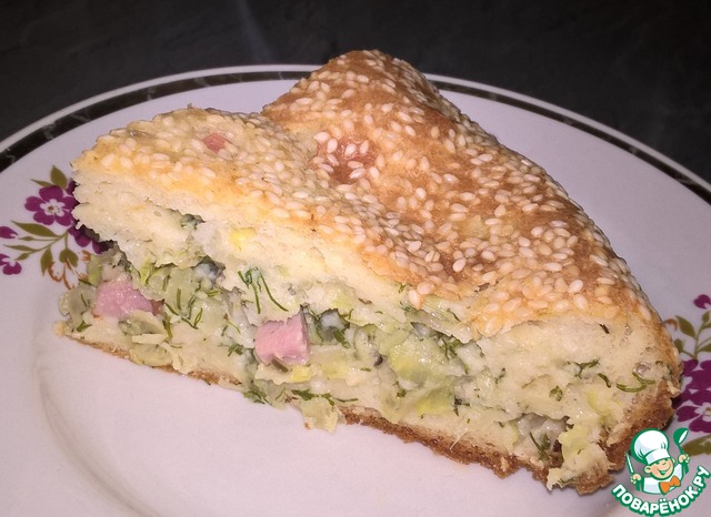 Рецепт «Заливной капустный пирог с копченой курицей»: